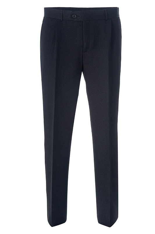 Черные классические брюки слегка зауженного кроя. Модель без защипов, посадка средняя. По бокам удобные карманы , сзади два кармана на пуговице. Выполнены из плотной практичной ткани.